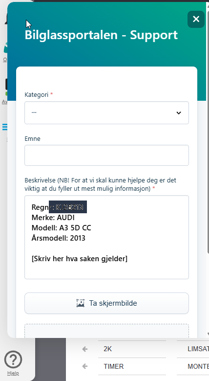 Bilglassportalen benytter et eget system for håndtering av feil og for å rapportere feil på data til Bilglassgruppen.